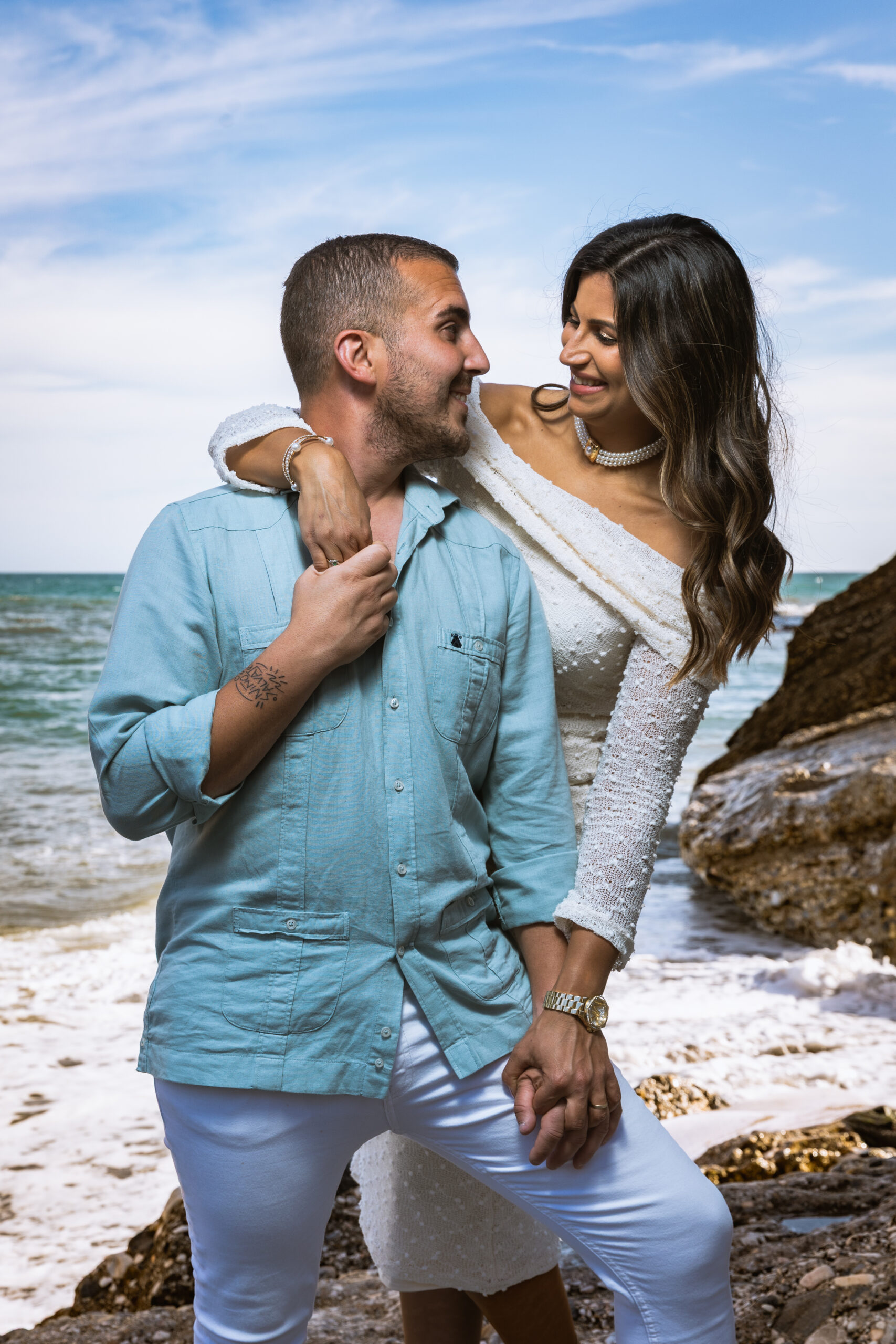 La postboda es la parte más visual e importante. Después de que todo haya salido perfecto, lo celebramos en una sesión de fotos en el agua, en la arena o en cualquier sitio idílico.